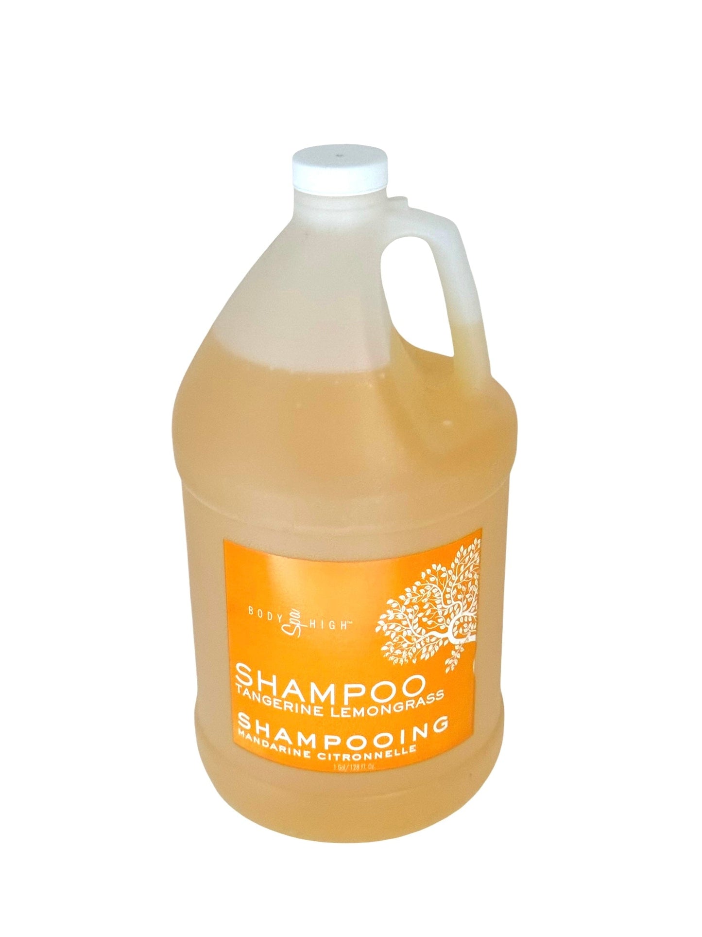 Body Spa High Hair Shampoo Tangerine Lemongrass 1 Gallon. Professional formulated to moisture as it Detangles & leaves hair healthy with lustrous shine, Containing no oils, daily use.